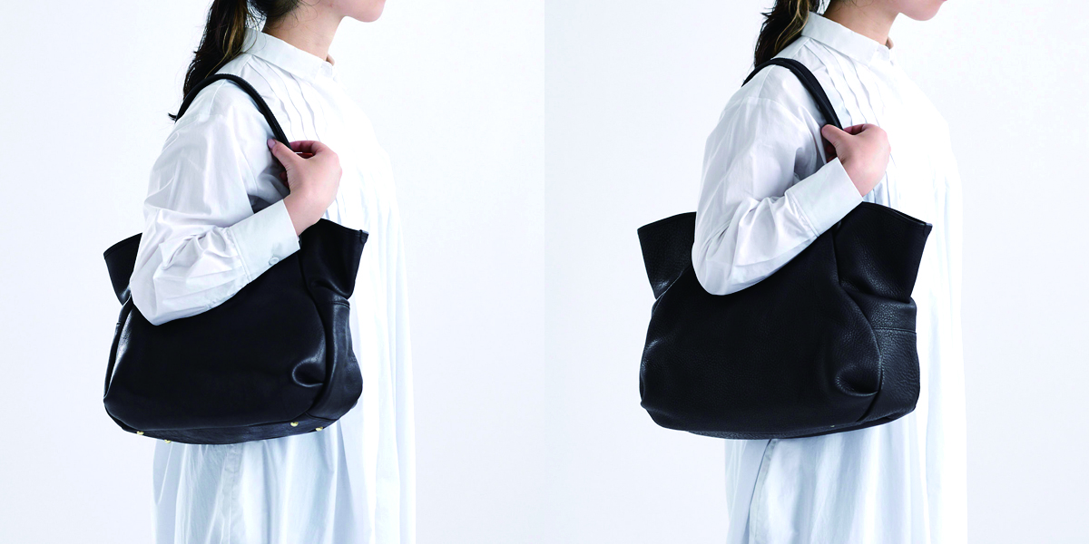 肩からずり落ちにくく、ハンドルの面が体に当たるよう設計されているので、フィットしやすく、持ち心地も良い仕上がりです。