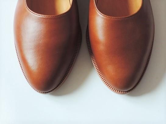 艶のある牛革がメンズシューズのような、かっこいいパンプス。