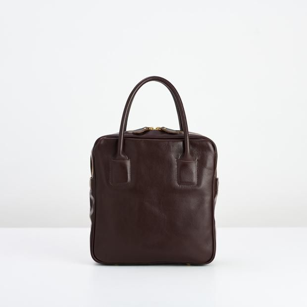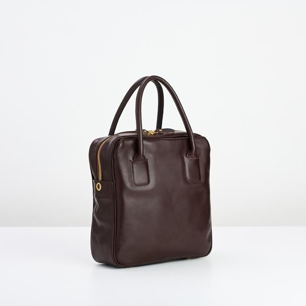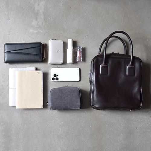 スクエア型の、少しモード感がありながらクラシカルな雰囲気のバッグ。
