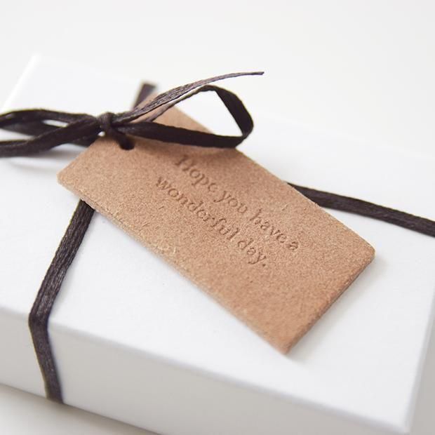レザータグには「Hope you have a wonderful day.」(素敵な一日を。)のメッセージを刻印。
