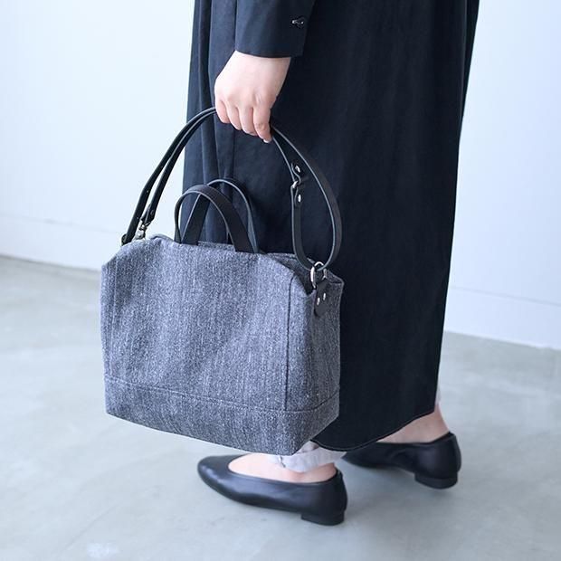 スポーツカジュアル全般に使用されているスウェット素材の杢糸(もくし)を旧式の織機でゆっくりと織ることで、ボリュームある帆布の特徴と、ナチュラルな風合いを併せ持った素材となっています。