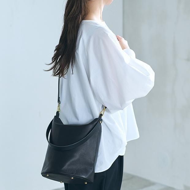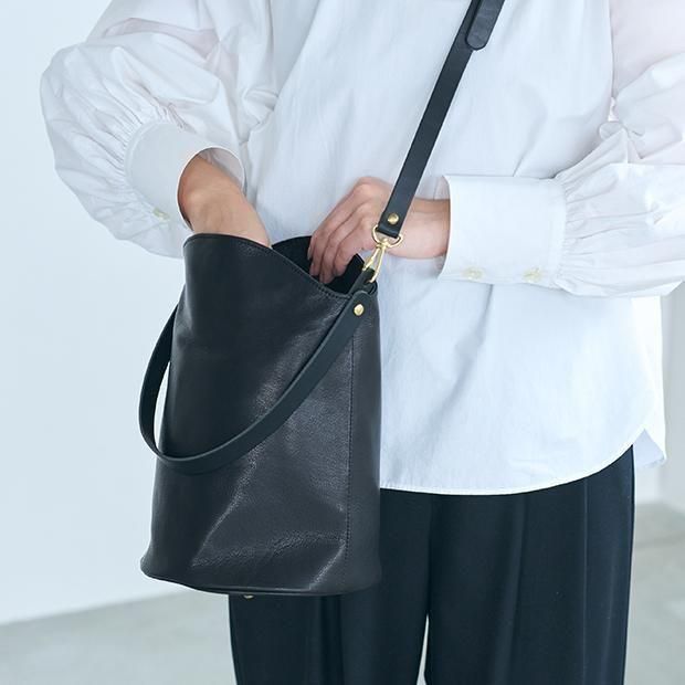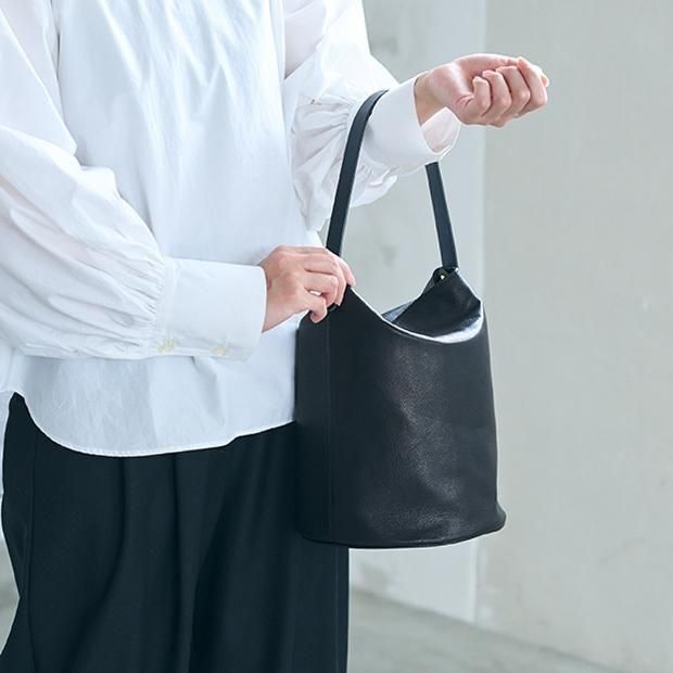 bamboo bucket shoulder Mのハンドルを数量限定でレザーでおつくりしました。
