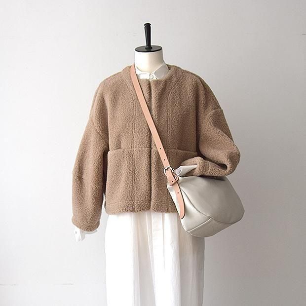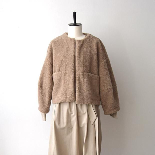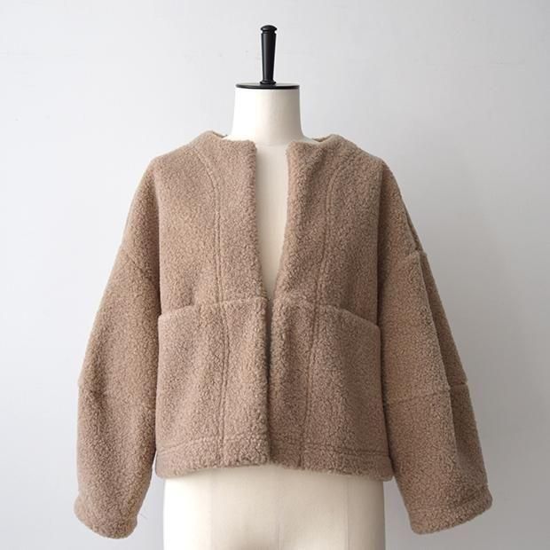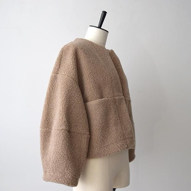 贅沢なタッチと軽い着心地を生み出すウール混の高密度パイル組織のボア素材を使用。